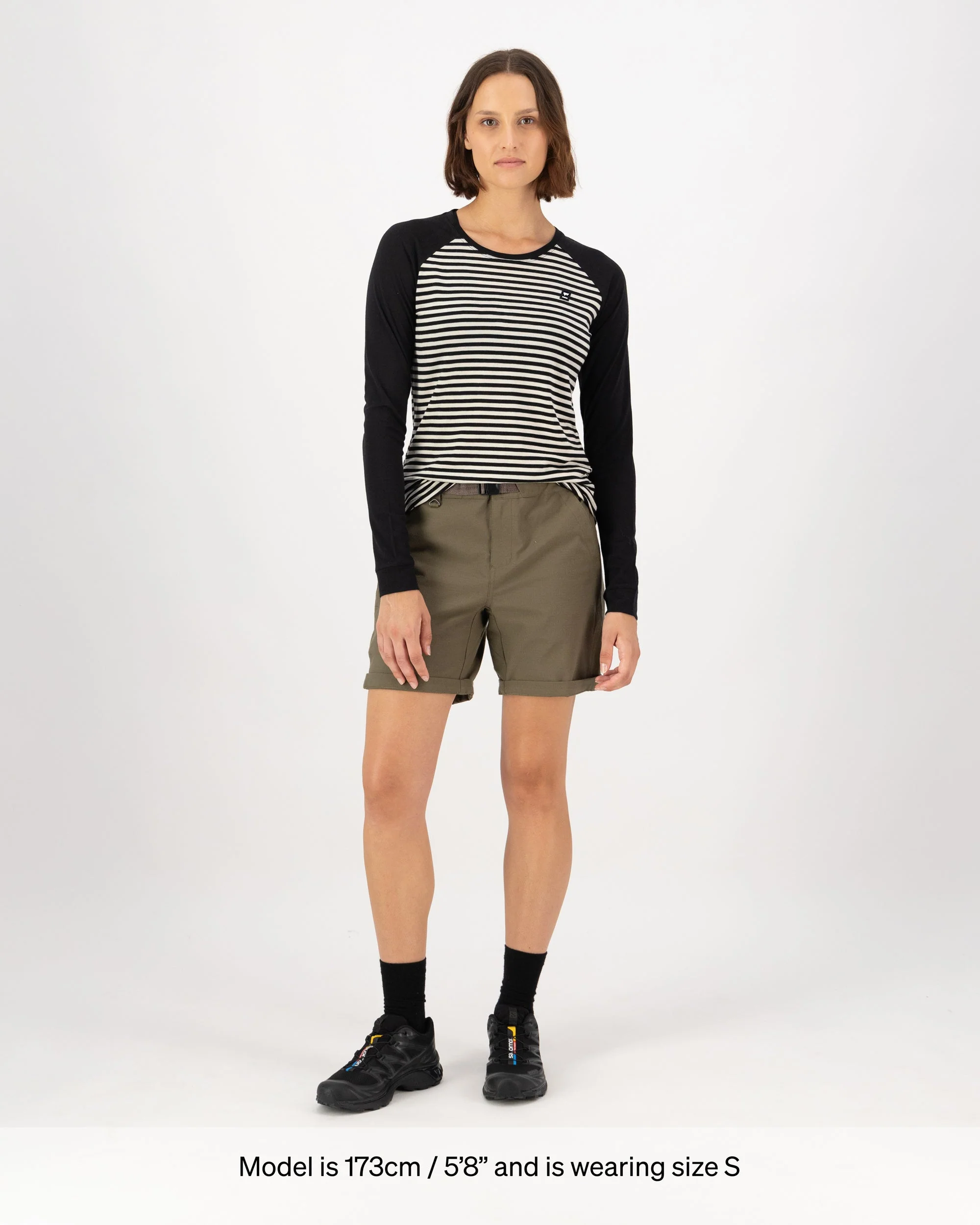 Icon Merino Raglan Long Sleeve - Stripe / Black | Women's Long Sleeve Top